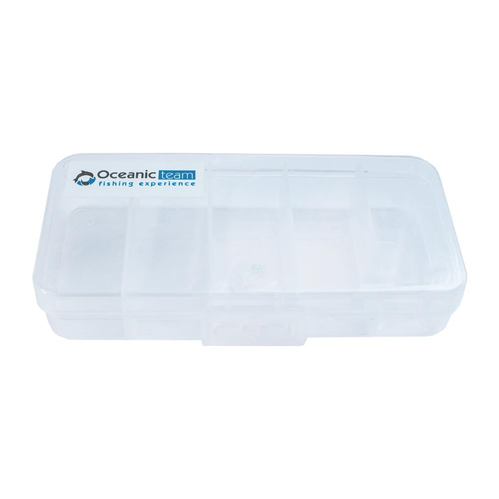 Διαφανής κασετινάκι αποθήκευσης του αλιευτικού μας εξοπλισμού, απο την Oceanic Team. Ιδανικό για αποθήκευση μικρών τεχνητών δολωμάτων, jighead και άλλων μικρών παρελκομένων. Διαστάσεις: 130 x 60 x 20 mm